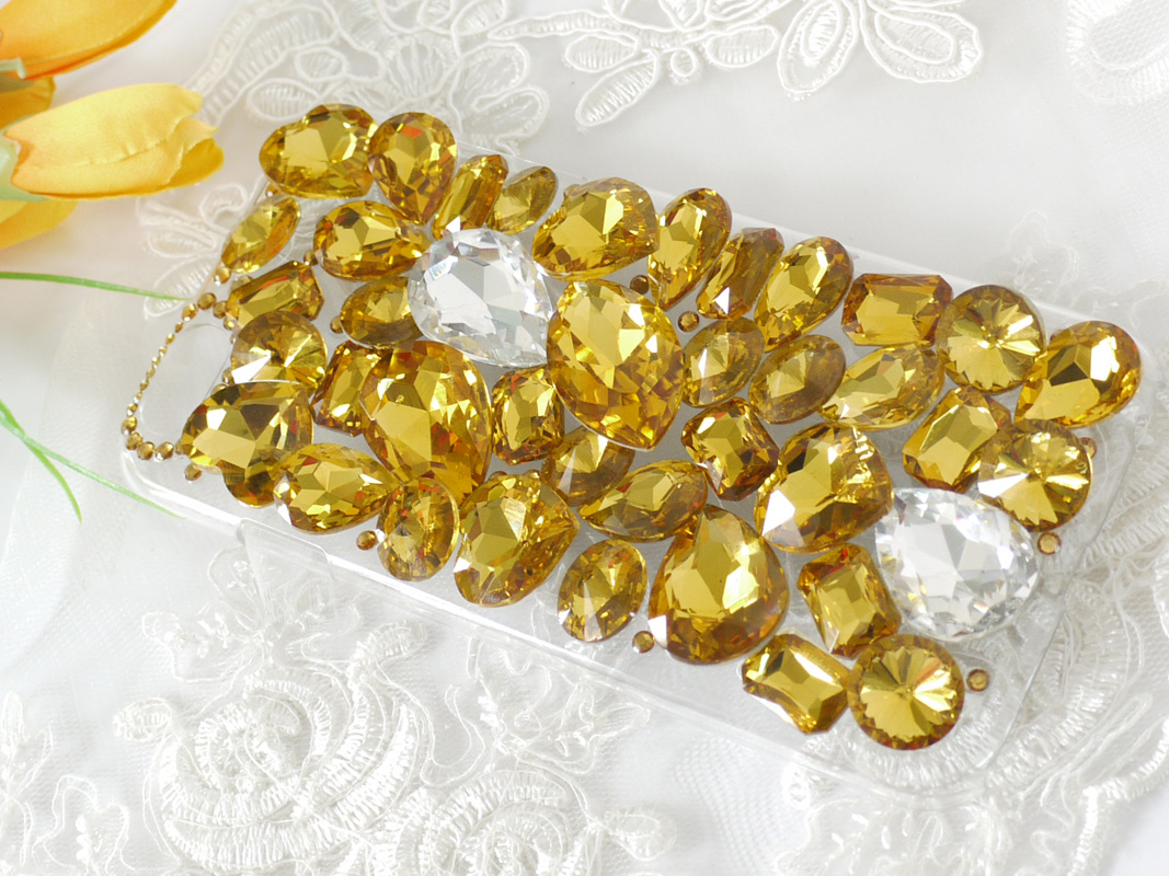 手帳型 スマホケース カバー デコ クリア 透明 ストーン きらきら 可愛い ハート