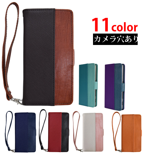 PU 手帳型 スマホケース 2トーンカラー 8色