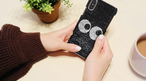 他と被らないアートデコストーン、こっちをみているようでそうでない乙女心くすぐられるw小さな1粒1粒がしっかり精密に入念に張り付けられているのでカバンに出し入れ時の剥がれちゃう不安心配もない毎日の幸せ感。