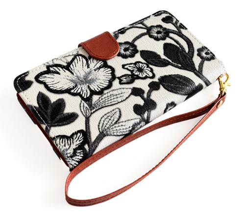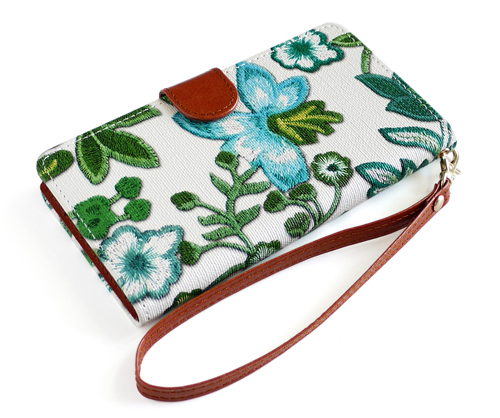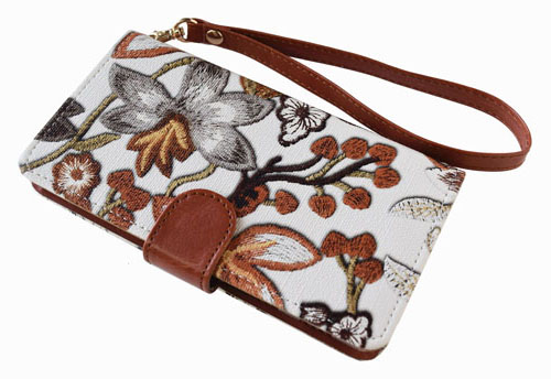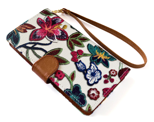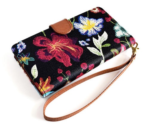 【左利き用】手帳型 スマホケース PU 花柄 フラワープリント 刺繍風