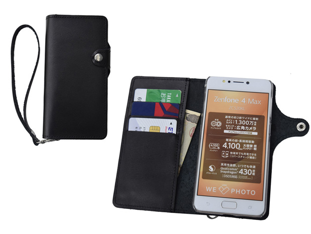 左利き用 手帳型 スマホケース PU マグネット 黒 ブラック