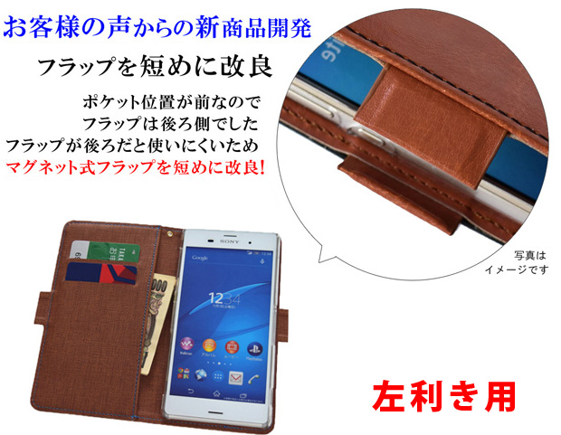 左利き用 スマホケース 前ポケット付 黒 カーキ ネイビー 赤 緑
