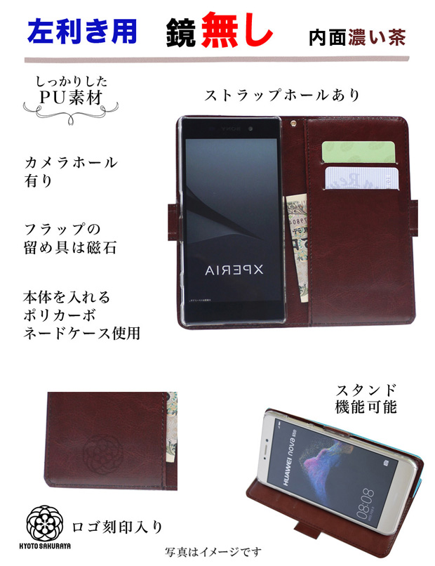 左利き用 スマホケース 手帳型 本革 ダークブラウン