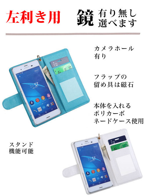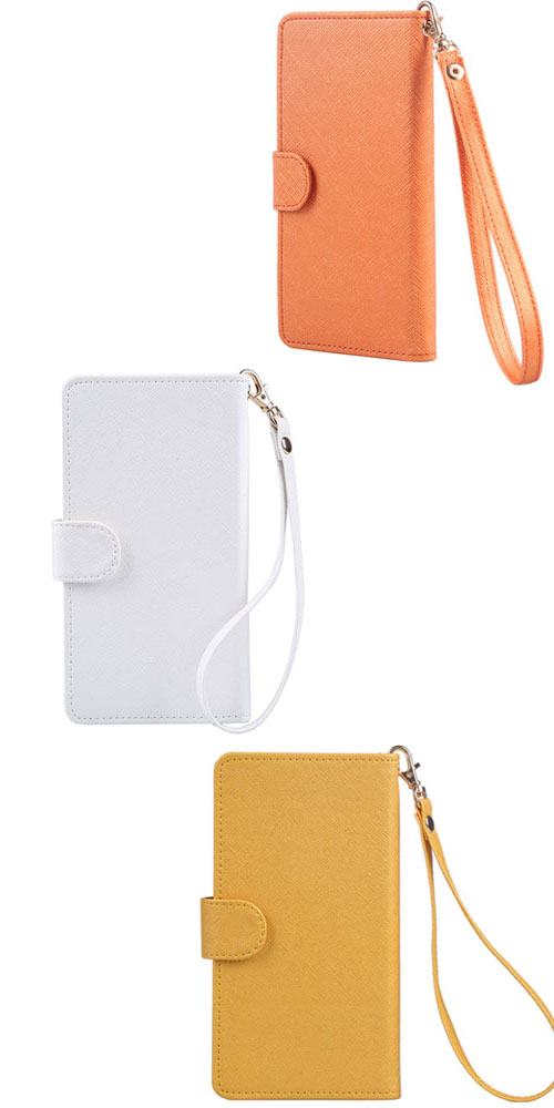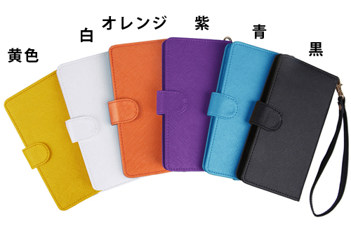 手帳型 スマホカバー 左利き用 黒 白 青 オレンジ 紫 黄 色