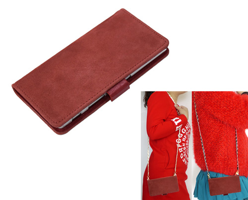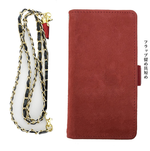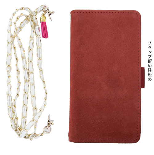 手帳型 スマホケース 本革 赤系 黒紐or白紐チェーン