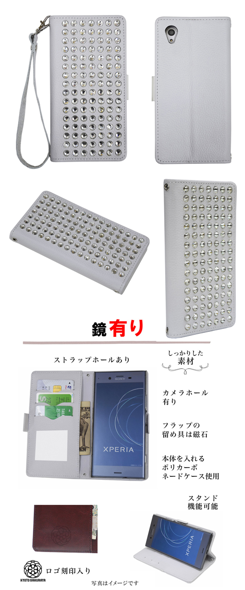 手帳型 本革 牛革 レザー デコ スワロフスキー