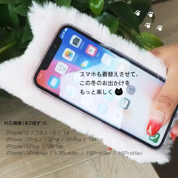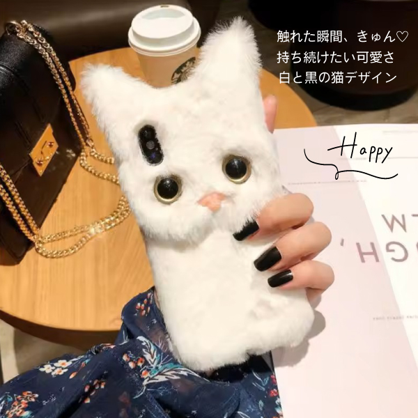 冬あったか♡もふもふ猫ちゃん】ふわふわファーの癒し系iPhoneケース|白猫・黒猫|猫好き必見の冬限定スマホケース