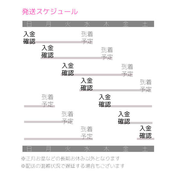 こちらの商品は完全受注生産となります。ご注文後、ひとつひとつ手作業で製作いたします。お届けまで約1週間ほどお時間をいただいております。