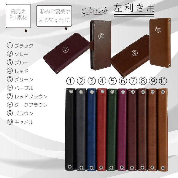 【左利き専用】合皮レザーの10色から選べる 手帳型スマホケース ― センスで差がつく、メンズ大人のマストアイテム ―