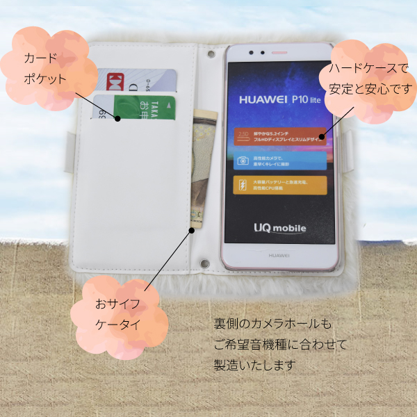 ほぼ全機種対応(iPhone/Android)・カメラ穴あり(ご希望の機種に合わせて製作)・ストラップホール付き → お気に入りのストラップで自分だけのアレンジも楽しめます
