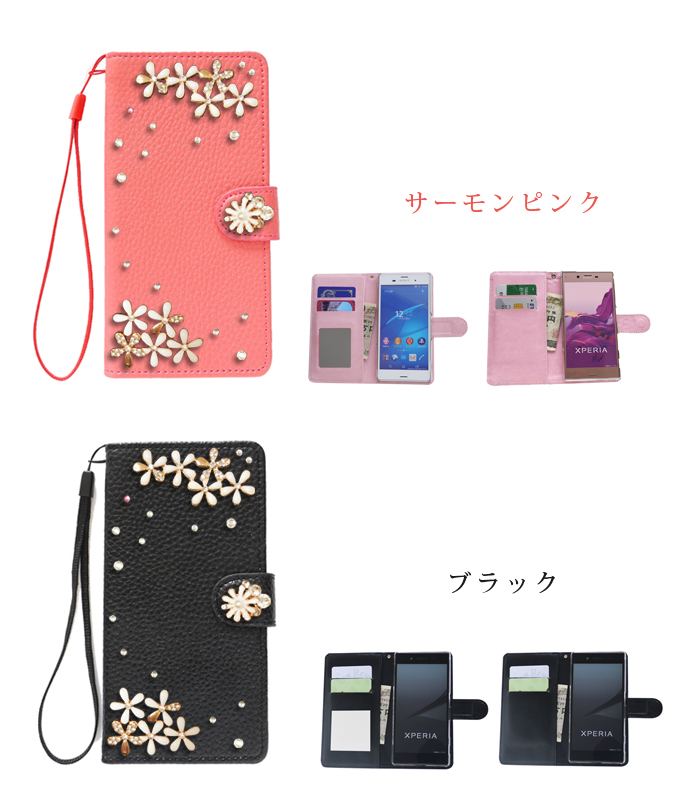 きらきらデコストーンスマホケース手帳型