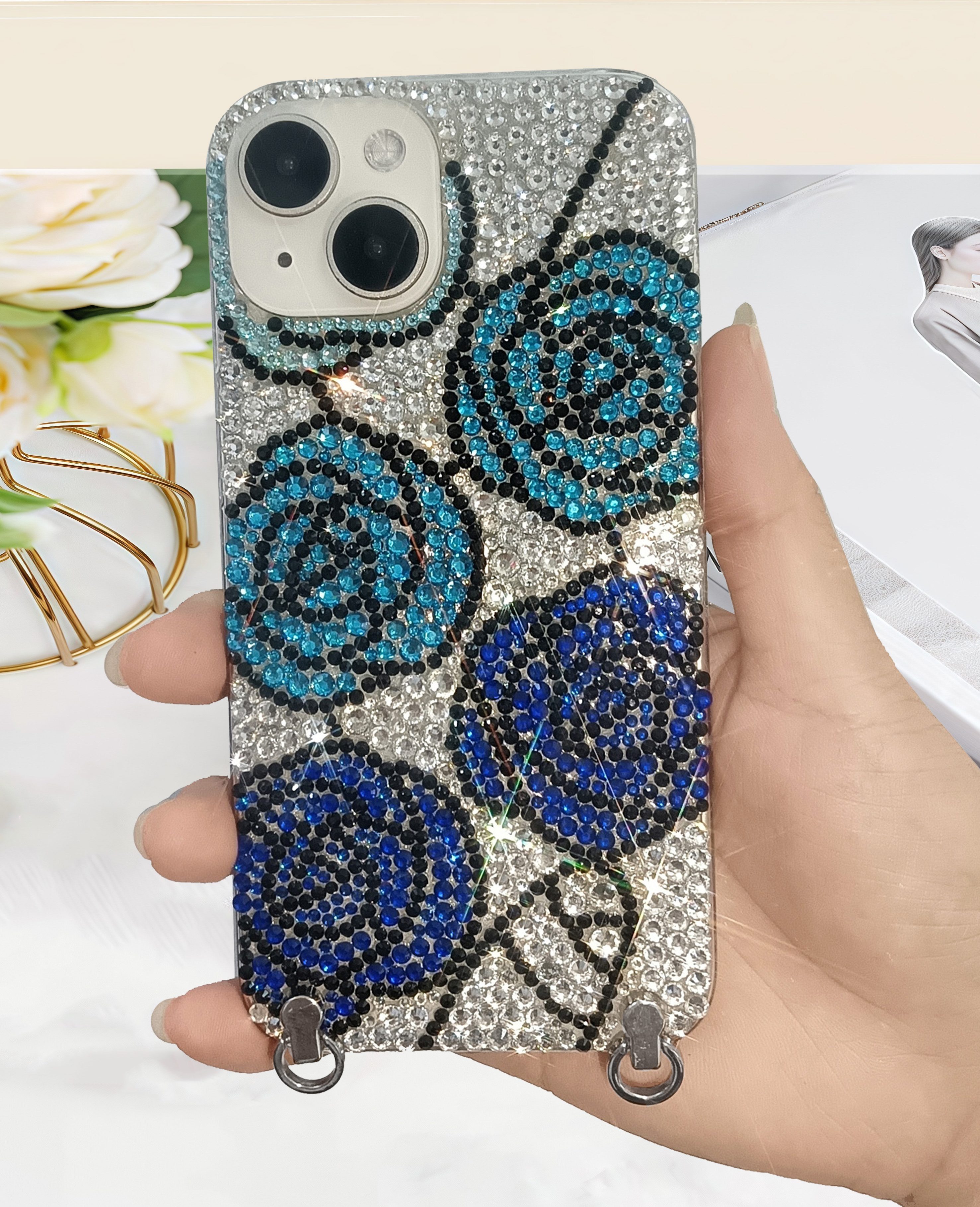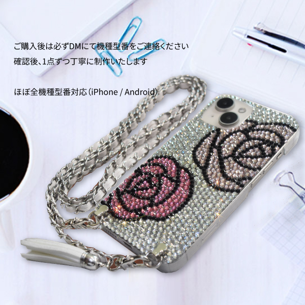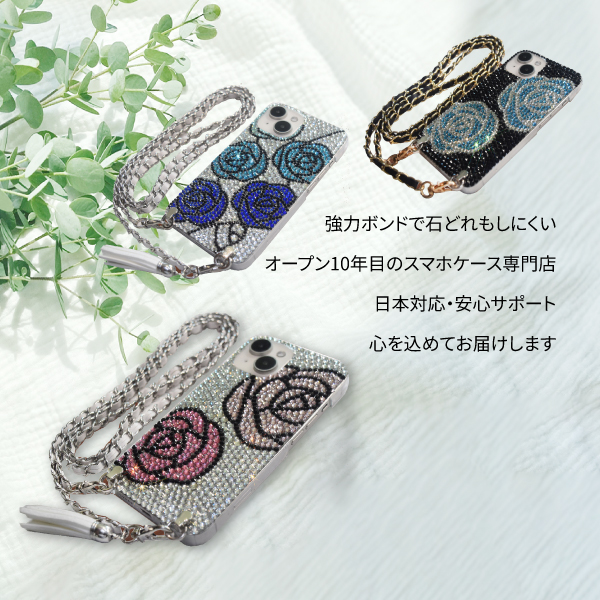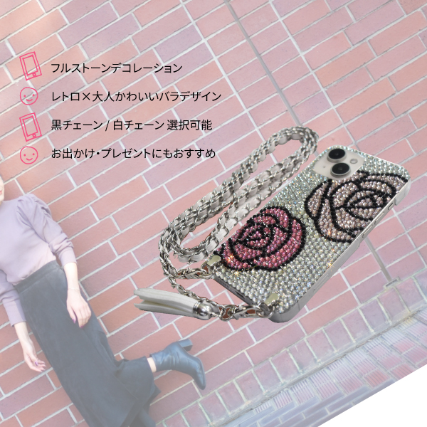 レトロローズが放つ、圧倒的なきらめき バラデザイン フルストーン デコレーションスマホケース